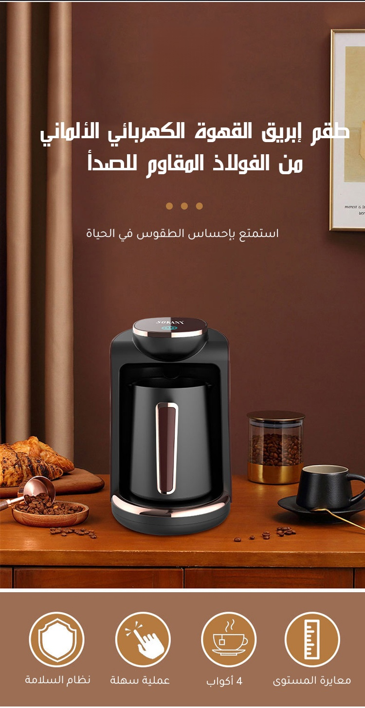 طقم إبريق القهوة الكهربائي الألماني من الفولاذ المقاوم للصدأ
